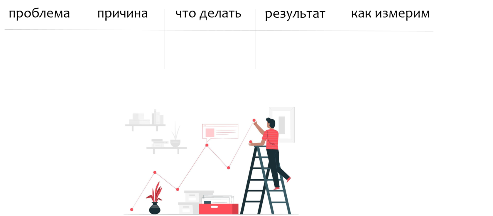 Важно на этом этапе продумать не только, что мы будем делать, но и каких мы хотим результатов от нашей проделанной работы, чего ожидаем. И как этот результат измерим: было – стало